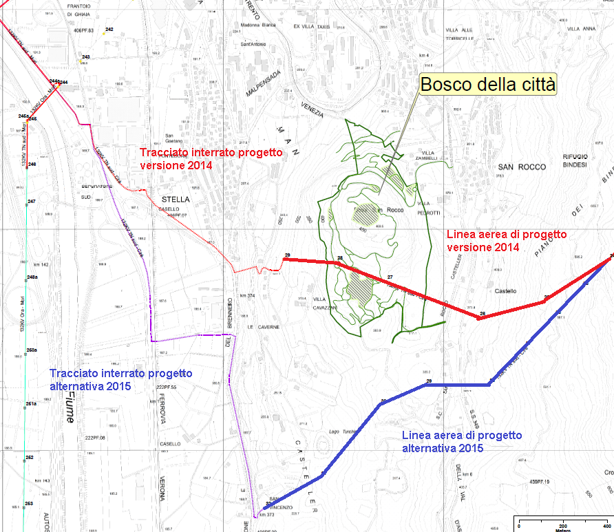 Nel mese di agosto 2015 Terna Rete Italia Spa ha presentato delle integrazioni al progetto iniziale con una variante di tracciato all'altezza del Doss di San Rocco. Il nuovo tracciato proposto non passa più per la parte sommitale del Doss, dove interferiva il parco del "Bosco della Città", con alcuni vigneti e ambiti paesaggistici di pregio, ma si sposta più a sud, allungando il suo percorso ma risultando così meno evidente e paesaggisticamente impattante. Una cartografia in allegato mostra la nuova ipotesi di tracciato.